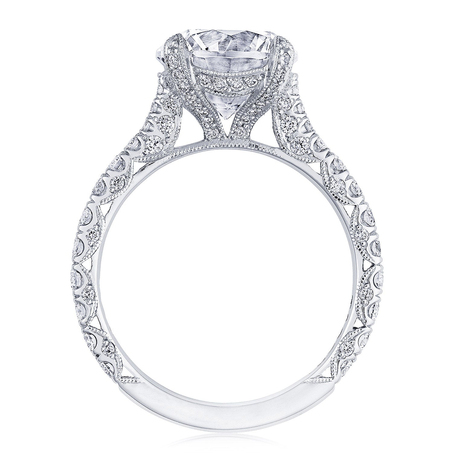 Best of both worlds, we've combined a "less metal, more diamond" intense look with the the classic refinement of our RoyalT Collection to fit your 2 carat and up round center diamond.