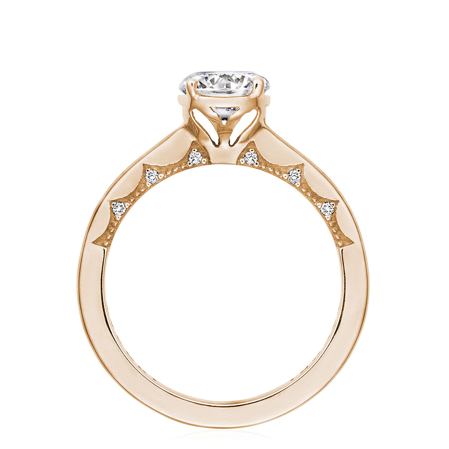 The beauty in the simplicity of this round cut diamond engagement ring is amplified by the Coastal Crescent inner face, with a diamond-cuddled detailing underneath the crescent.