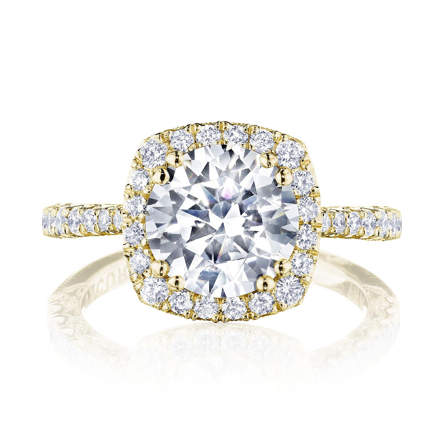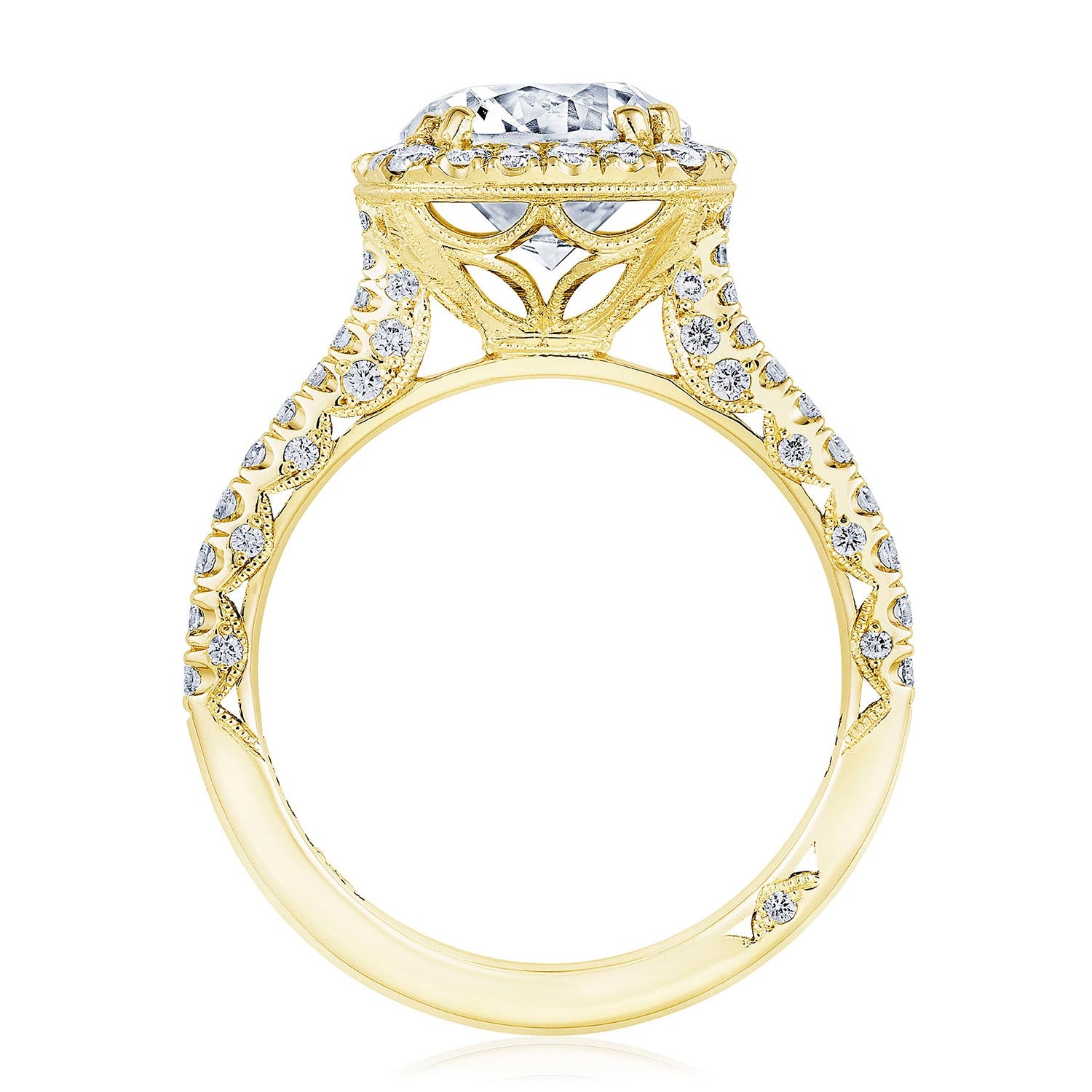 Heralding from the Petite Crescent Collection, this beautiful new style now "blooms" to spotlight your center diamond