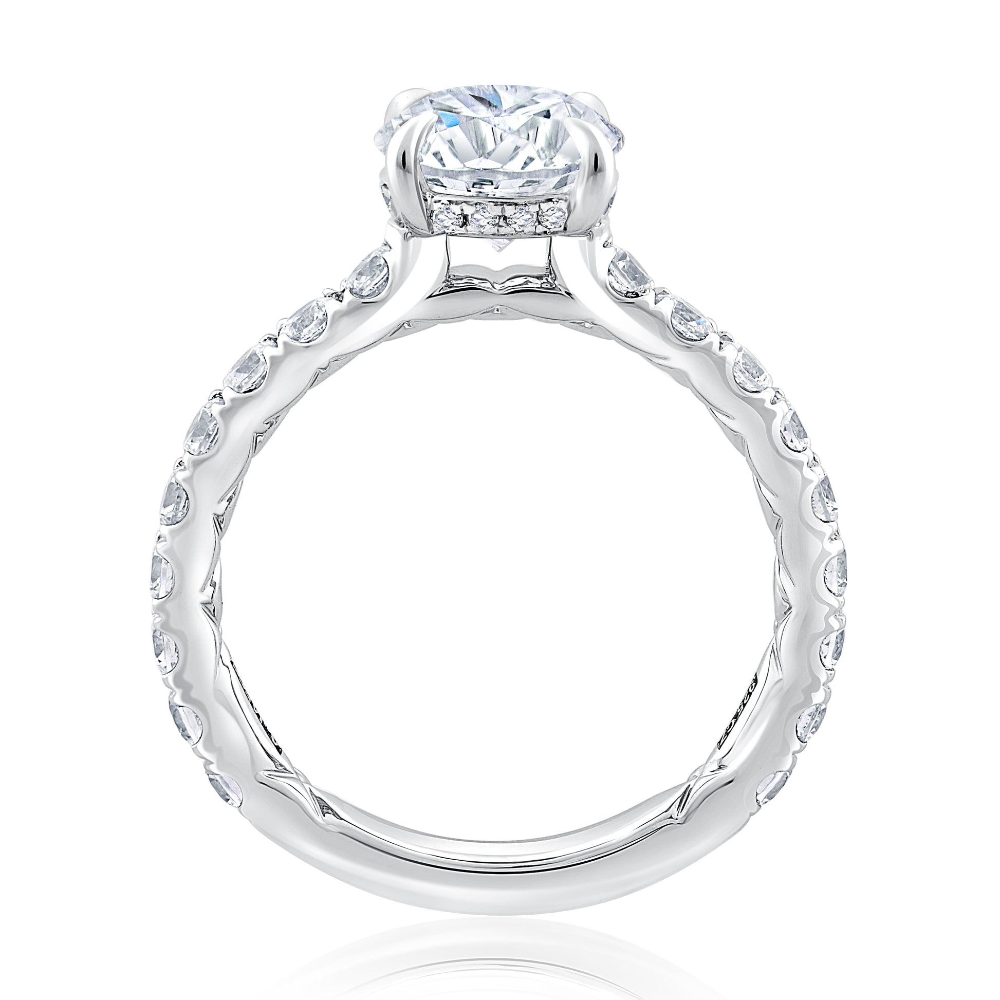 From the A.JAFFE Classics™ Collection, this round cut engagement ring features a hidden halo and shared prong diamond band.The classic style interior features a petite version of the A.JAFFE Quilts™, expertly handcrafted with beauty and luxury in mind.