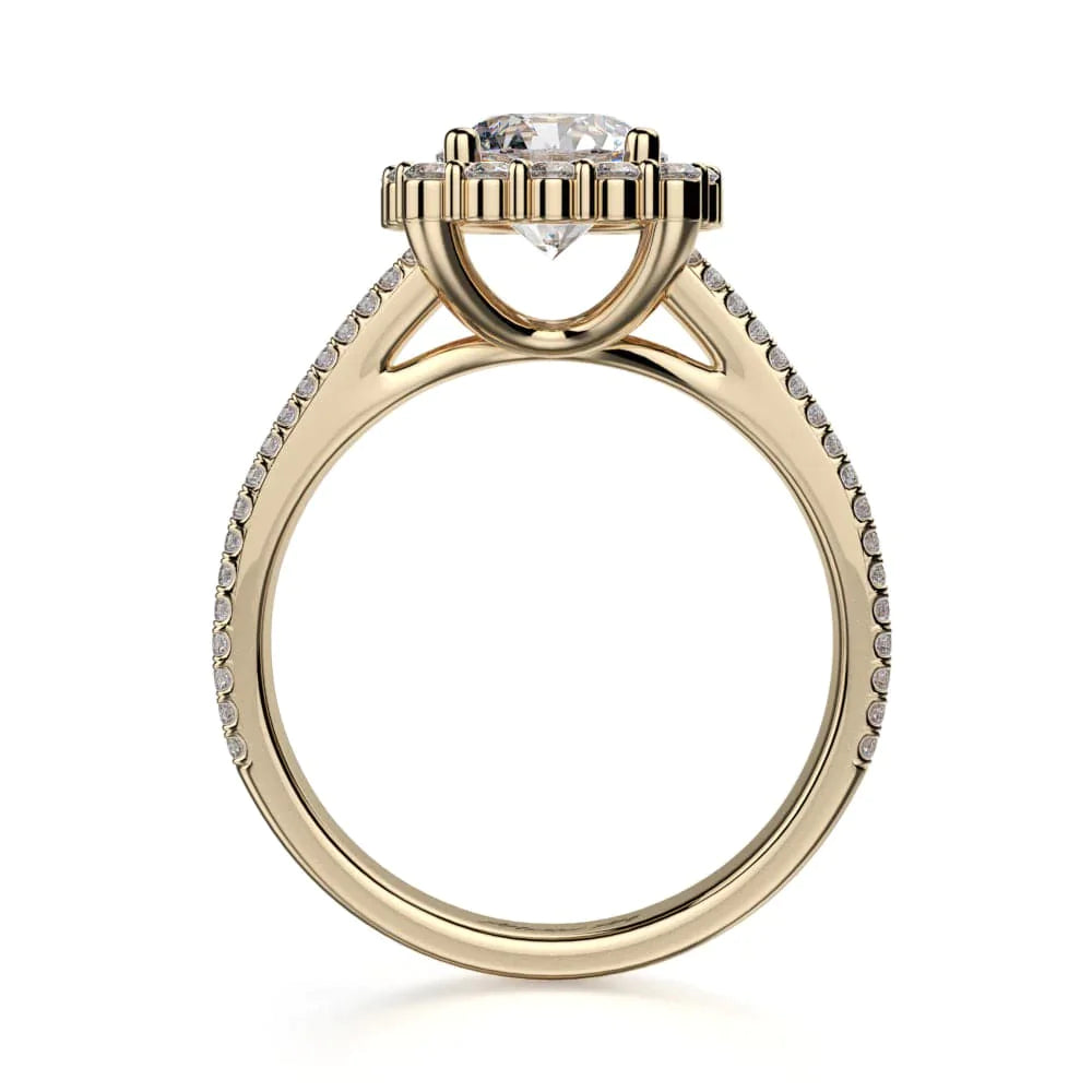 Immaculate Michael M engagement ring with stunning round center diamond setting. Adorned with over 0.80 carats of side diamonds. Crafted in exquisite 18-karat white gold for a timeless and elegant look.