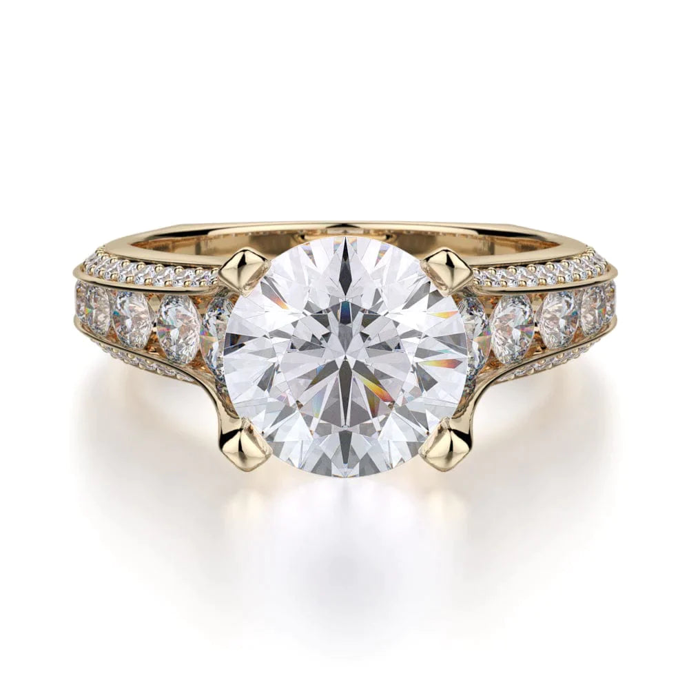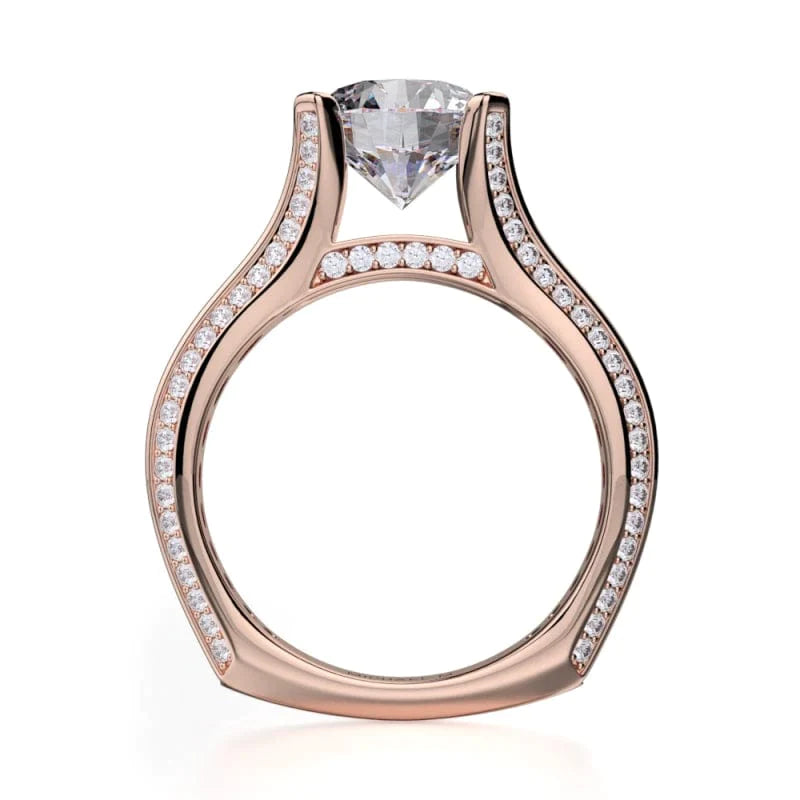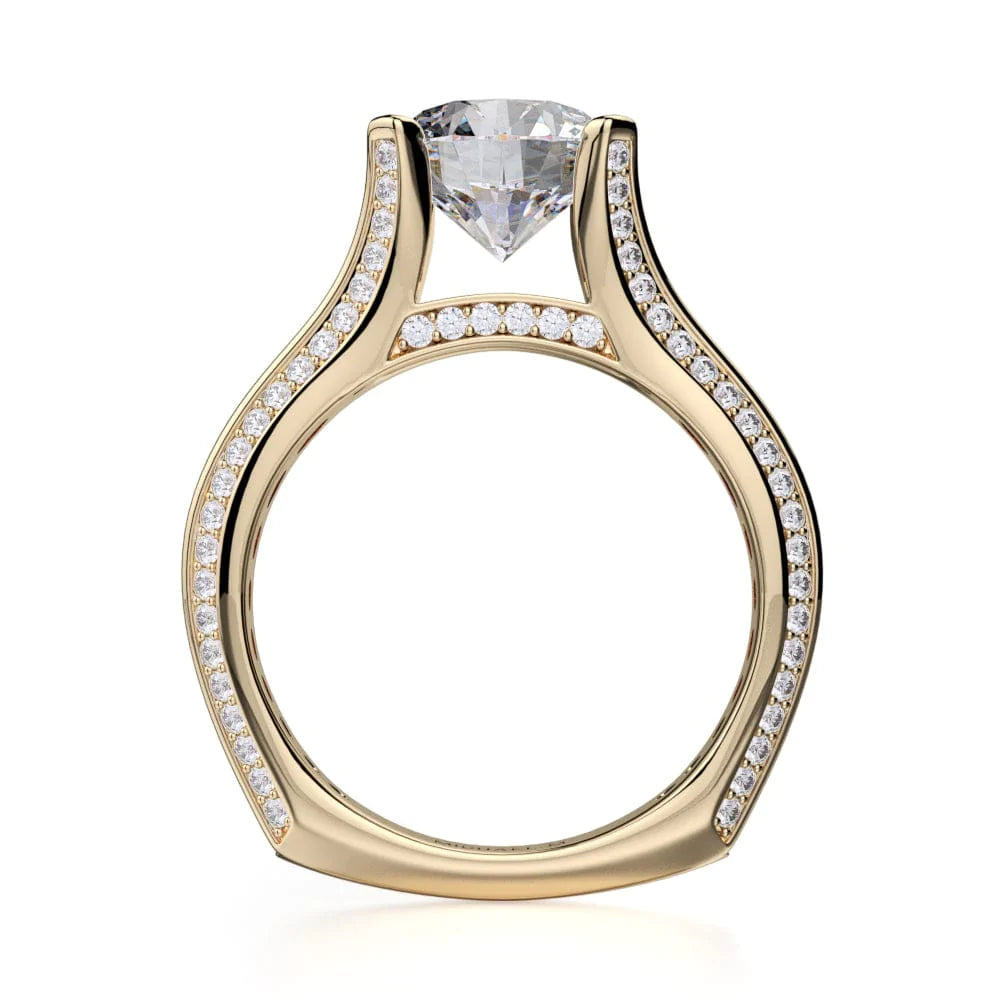 Immaculate Michael M engagement ring with stunning round center diamond setting (diamond not included). Adorned with over 1.10 carats of round cut side diamonds. Crafted with exquisite 18-karat white gold for a timeless and elegant look.