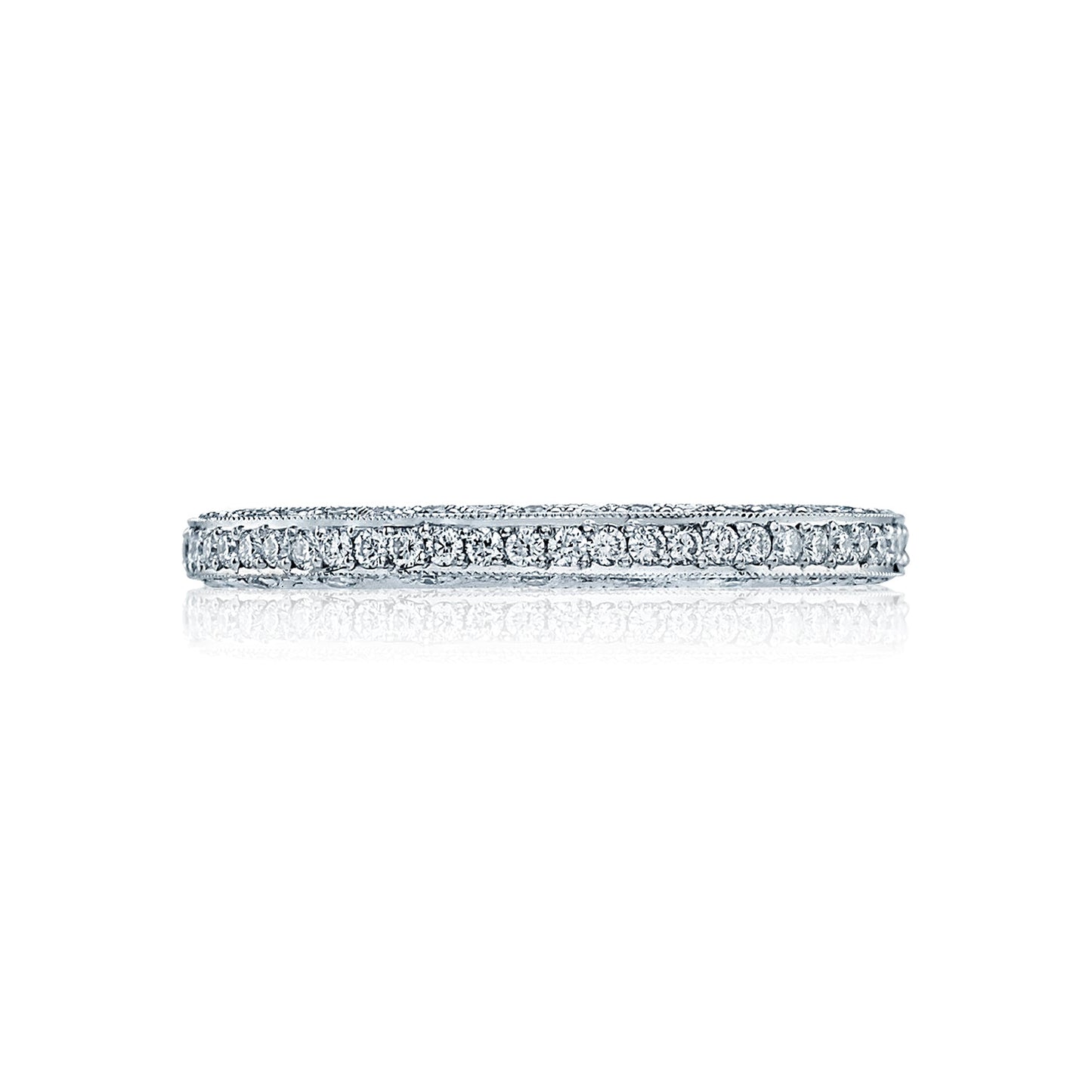 Shine from every angle with this White Gold band featuring pavé set diamonds. Perfect for the Tacori Girl who loves to sparkle. Available in Platinum & 18k Gold.