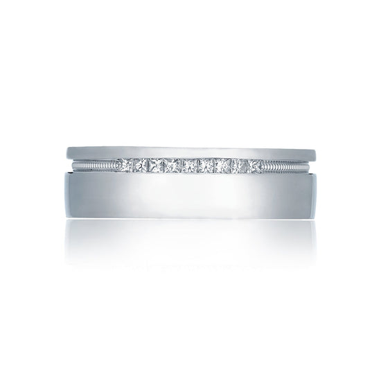 Elegantly crafted in platinum, this Tacori wedding band features a row of sparkling diamonds totaling 0.2 carats. The timeless design of the 6.5mm band is a symbol of everlasting love and commitment.