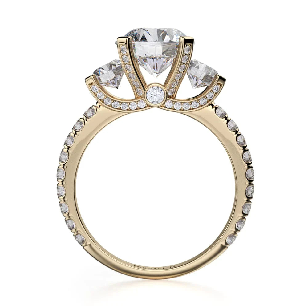 This Michael M engagement ring is immaculately adorned with over 1.22 carats total weight of breathtaking round cut side diamonds. Handpicked by a certified Michael M gemologist, each side stone has a minimum average color of G, a minimum average clarity of VS, and are all hand-placed in an elegant prong setting by one of Michael M’s master artisans.