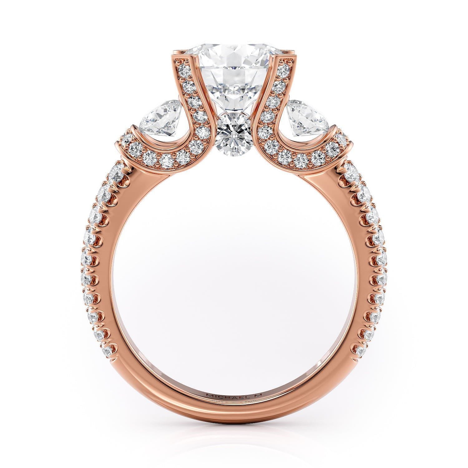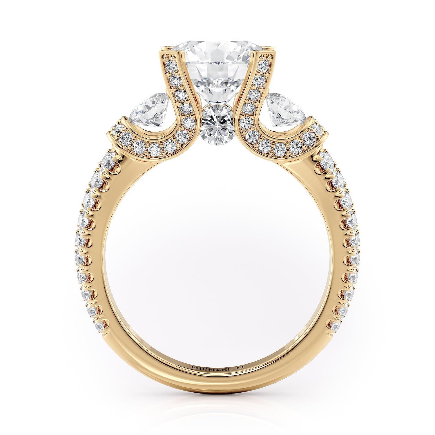 This MICHAEL M engagement ring is adorned with side diamonds handpicked by a certified MICHAEL M gemologist, each side stone has a minimum average color of G, a minimum average clarity of VS, and are hand-placed in an elegant prong setting by one of MICHAEL M’s master artisans.