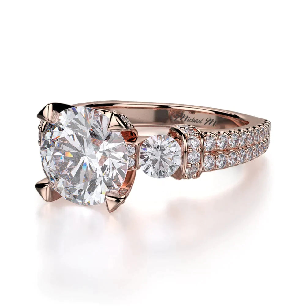 Exquisite Michael M engagement ring with stunning center diamond accommodation for 1.85-2.10 carats. Immaculately adorned with over 1.22 carats of side diamonds in elegant prong setting. Crafted with 18-karat white gold for lasting beauty.