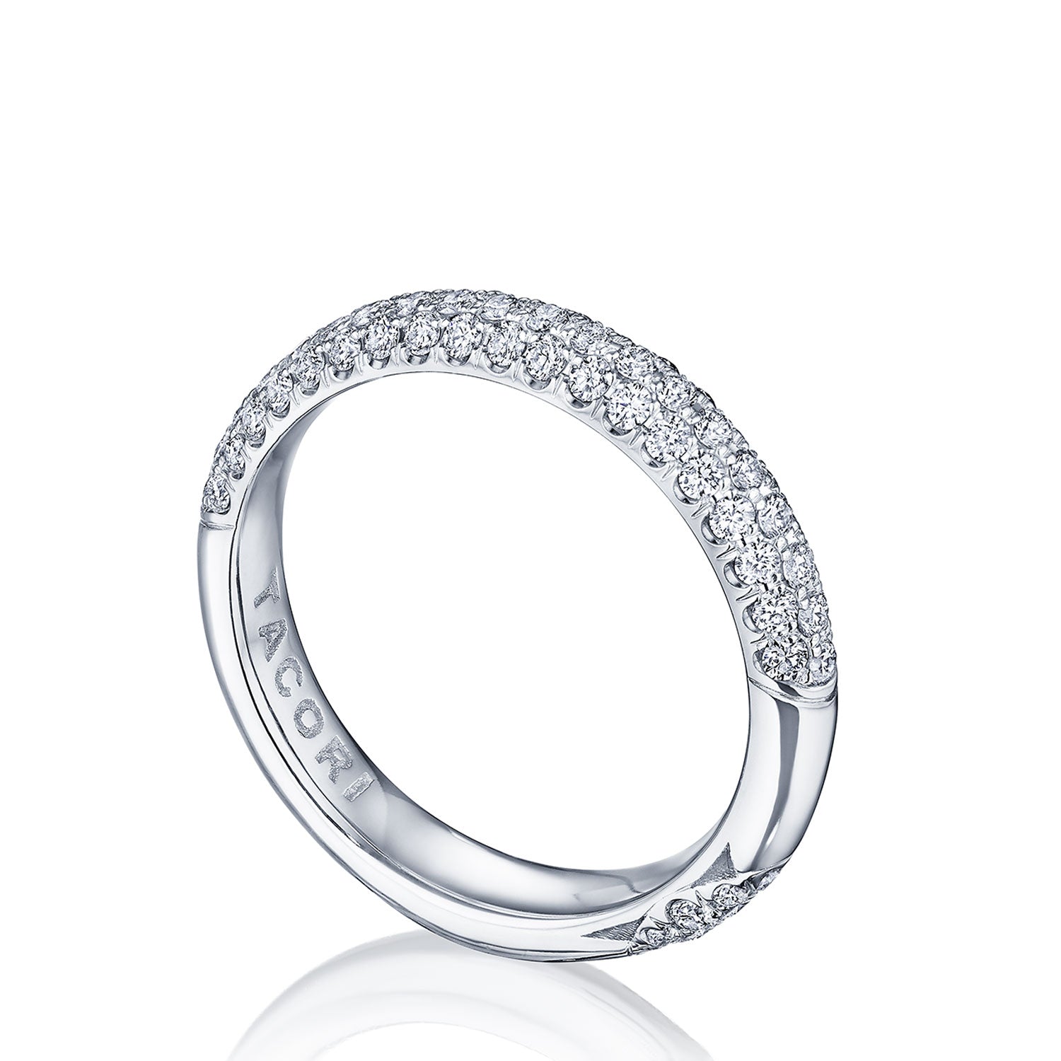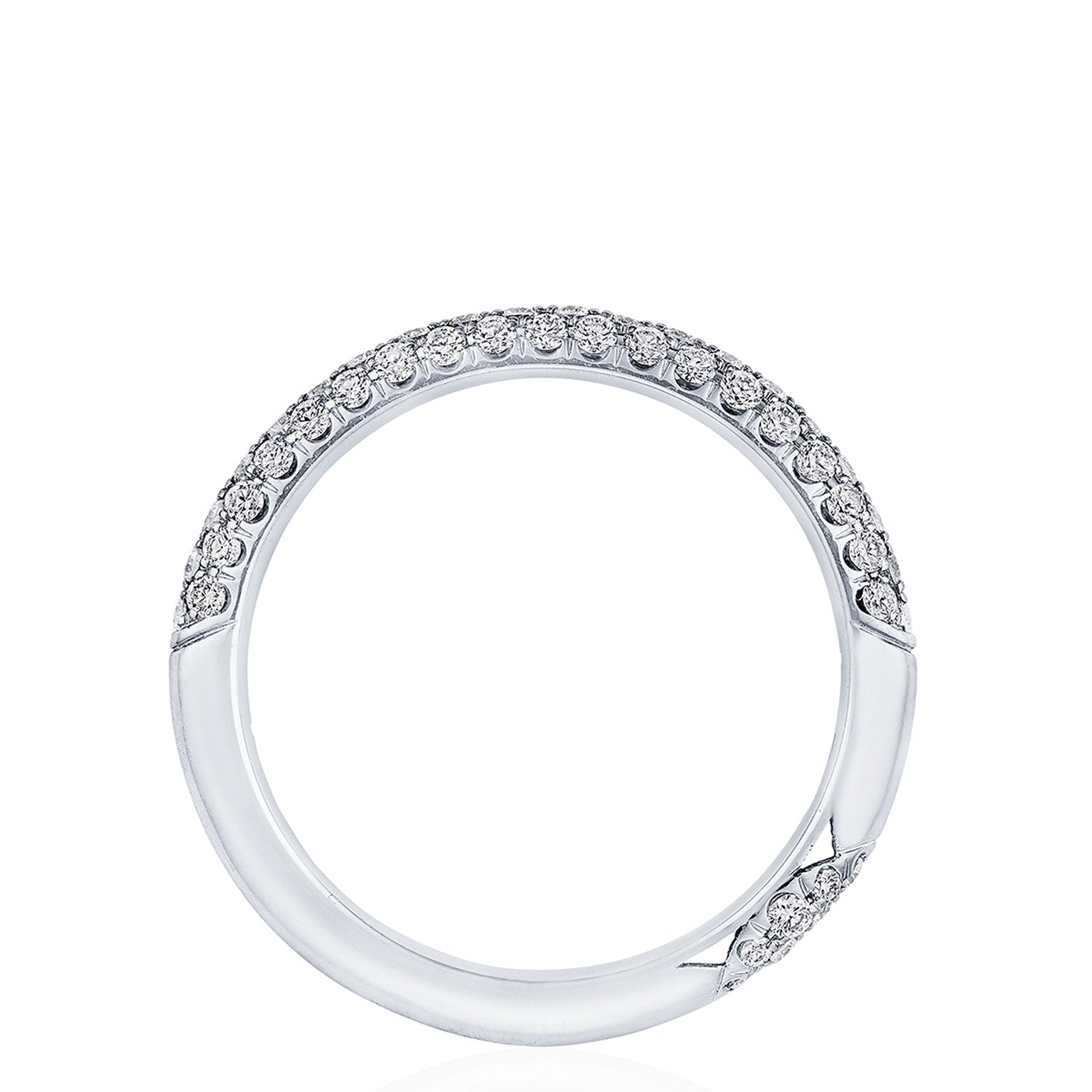 Designed by our Founder, Haig Tacorian, this wedding band features a triple row of pavé-set diamonds, half-way around the band. Discover the diamond-intense Tacori crescent signature.