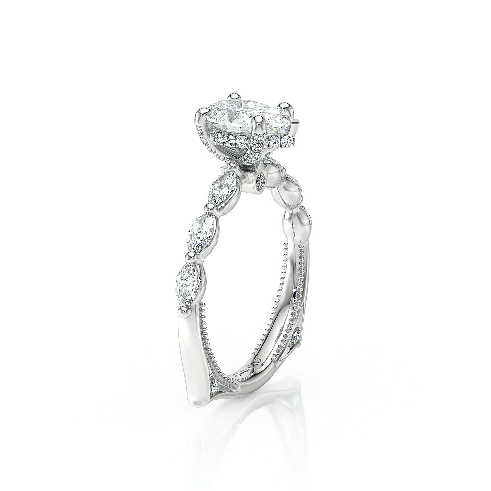 The VNG-2205PS features three distinctive south-to-west facing marquise stones along the shank, enhanced by Verragio beading and a diamond head for a refined look.