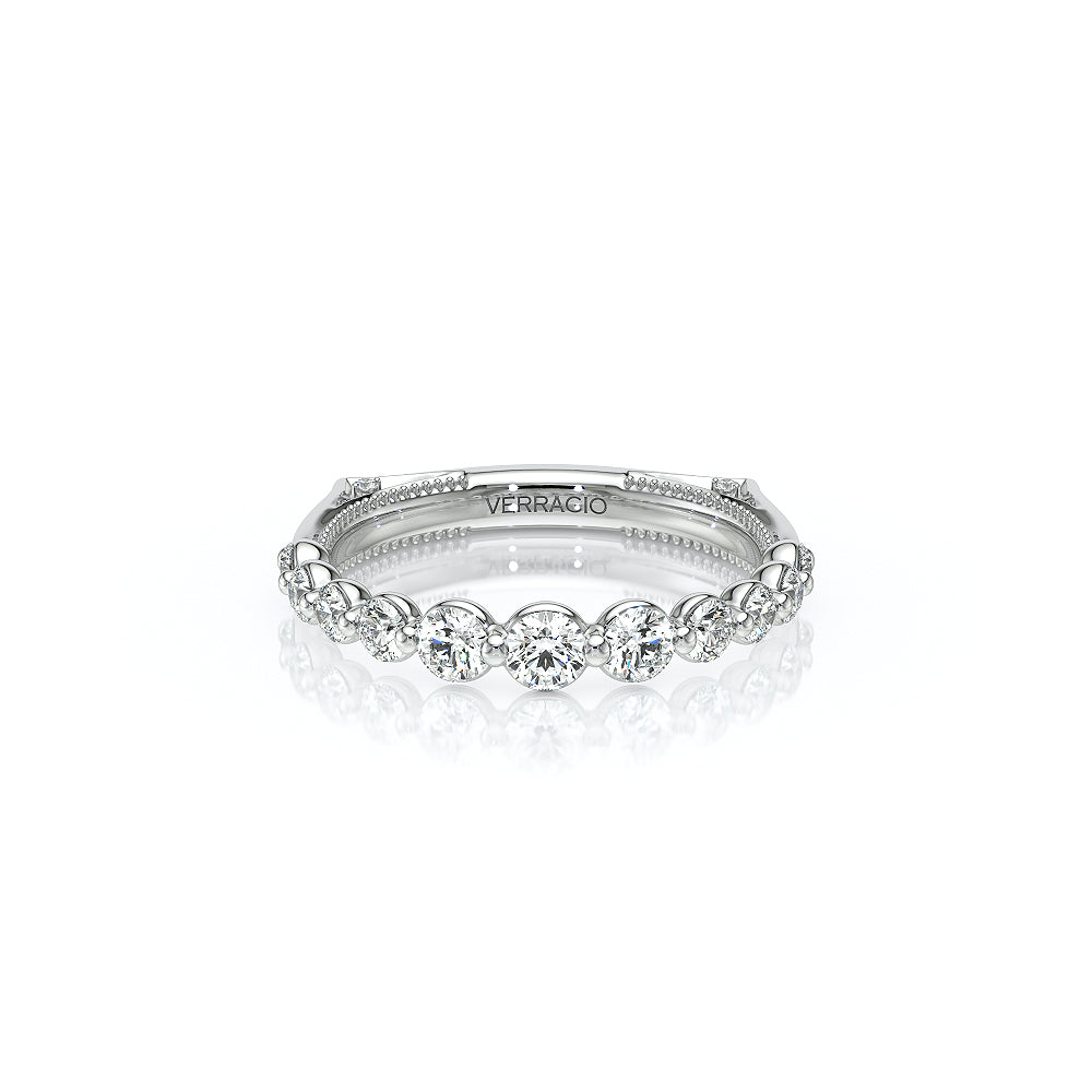 The VNG-2206W band features round graduating stones along the shank, elegantly accented by Verragio's signature beading for a timeless and versatile design.