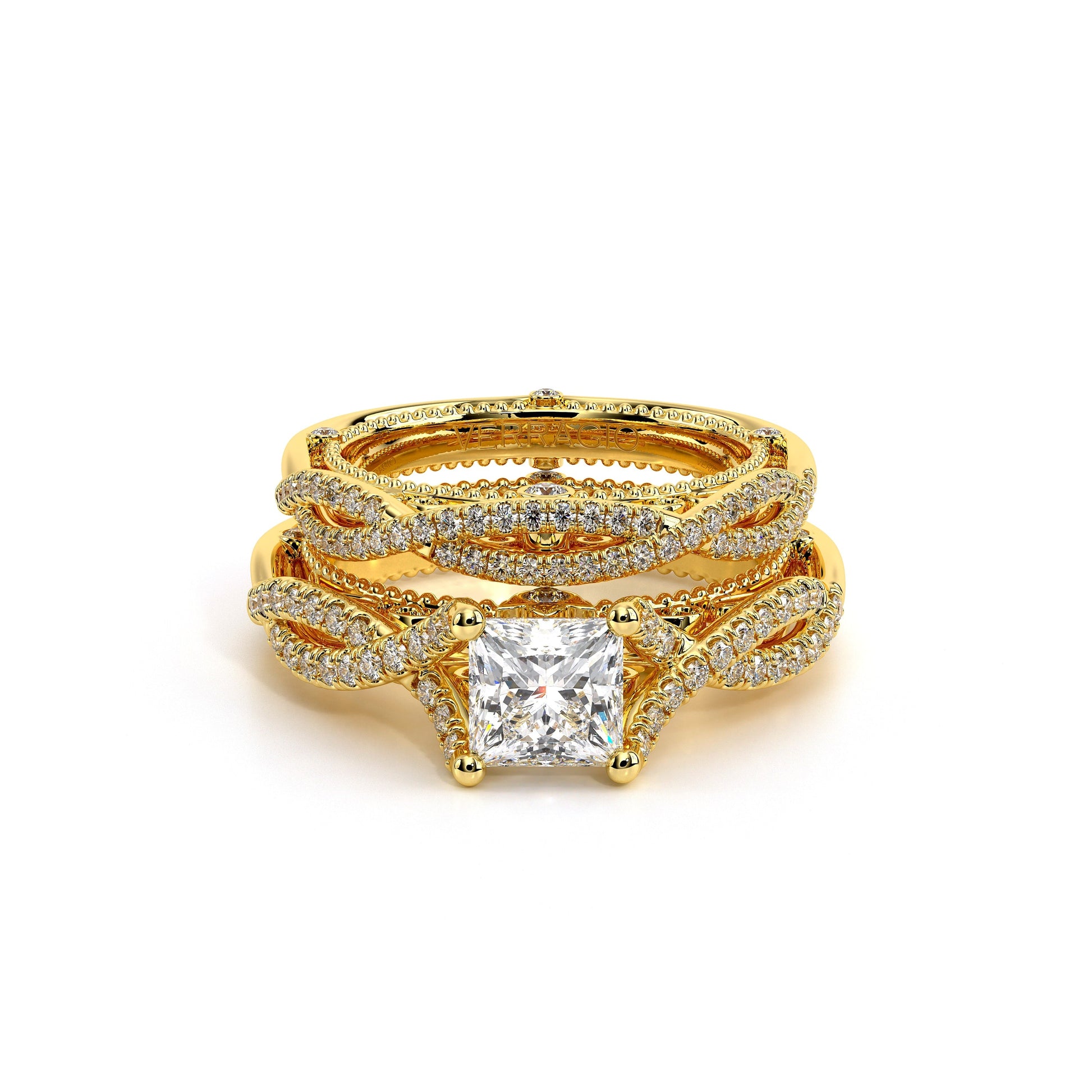 VENETIAN-5003 engagement ring from the Venetian Collection, features a pave' set diamond twisted shank showcasing handcrafted lace and Verragio signature beading. This beautiful vintage four-prong setting gives an illusion of a floating center stone and can accommodate almost any diamond cut desired.