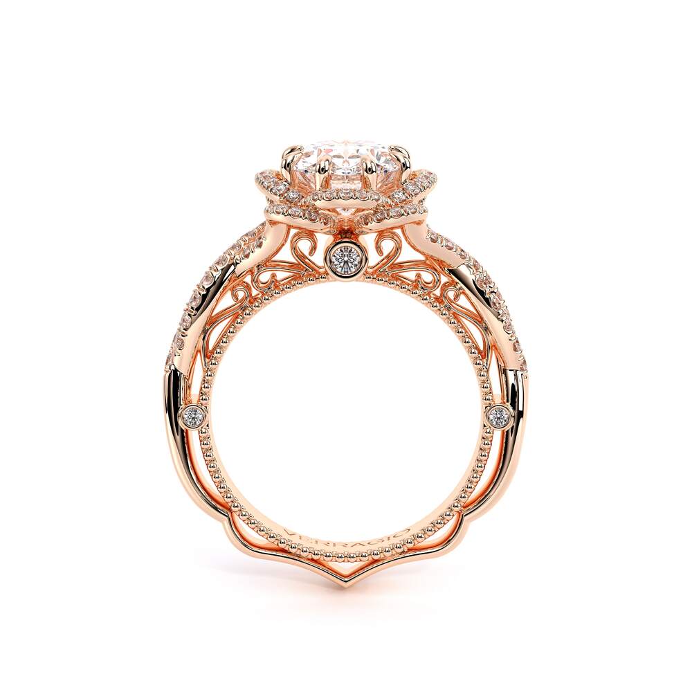 VENETIAN-5051OV engagement ring features our beautiful Verragio Floret halo modified for an Oval center along with a twisted shank encrusted with round brilliant diamonds. An intricately crafted lace design along with our Verragio signature beading further enhances this gorgeous piece and you can't help but fall in love with it.