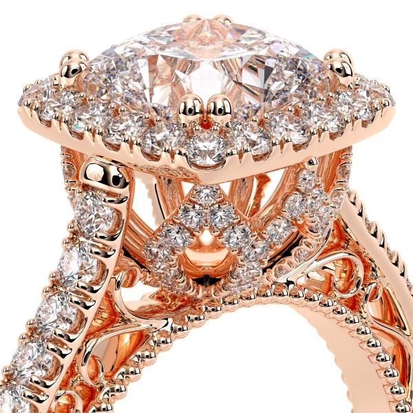 Experience the romance and sophistication of the Verragio Women's Engagement Ring with Matching Wedding Band, the VENETIAN-5061W. Crafted with a rose gold diamond-adorned basket and cushion-shaped halo, this exquisite piece from the Venetian Collection is the perfect symbol of your love story.
