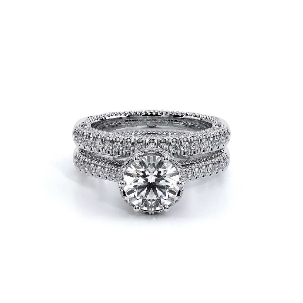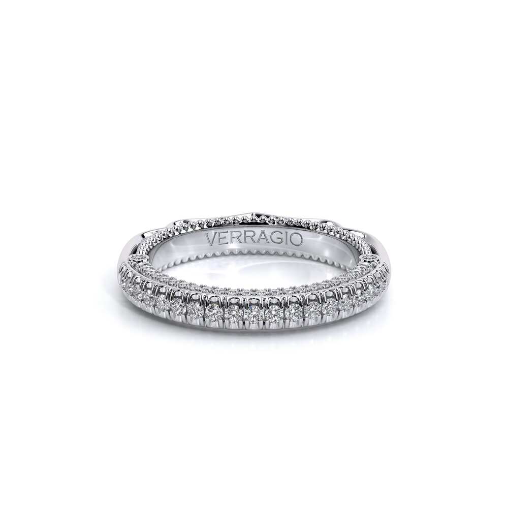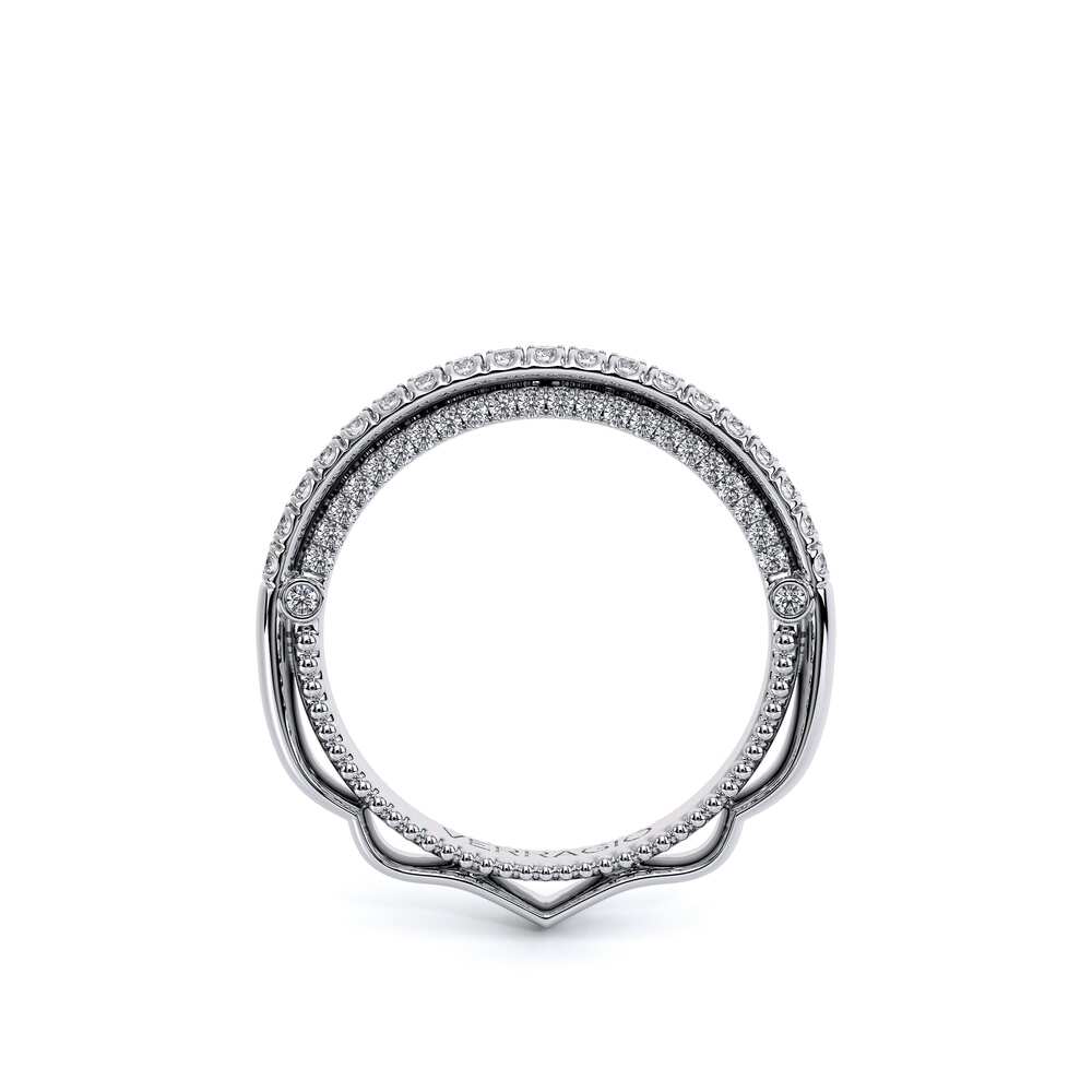 VENETIAN-5070W from the Venetian Collection, features a gorgeous straight band adorned with round brilliant diamonds. Additionally, a sparkling half diamond Riviera on the inside compliments your matching engagement ring. Complete your bridal look by ordering your set today.