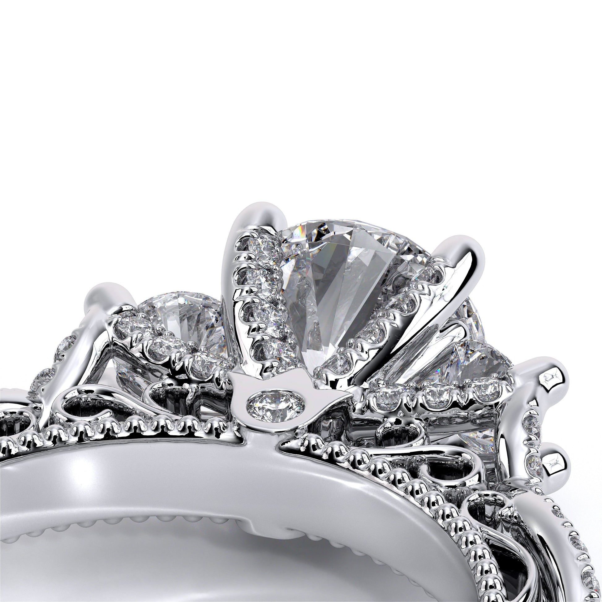 VENETIAN-5079R engagement ring from the Venetian Collection, features a vintage three stone round diamond prong setting, each encrusted with round brilliant diamonds. Our Verragio signature beading and lace detail beautifully binds together all elements and creates this visually stunning piece of art.