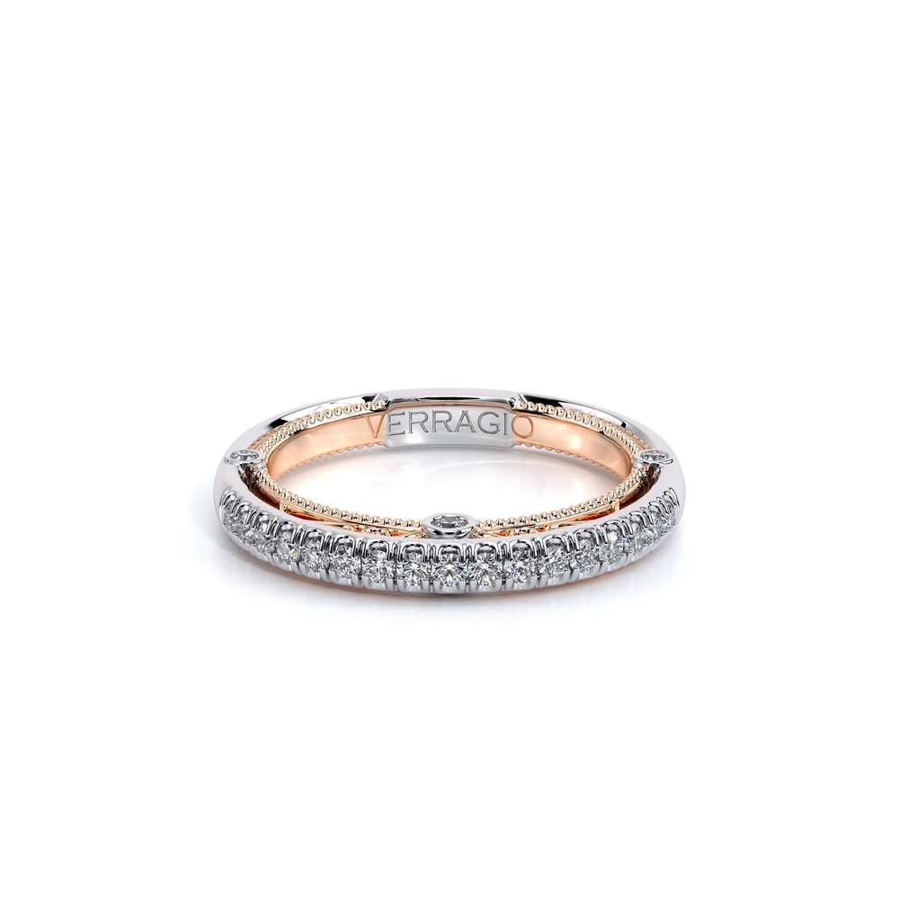 VENETIAN-5081W from the Venetian Collection, features a straight shank encrusted with round brilliant diamonds. The inside profile includes three bezels set round diamonds along with lace & signature beading to match with your engagement ring. Complete your Verragio look by customizing your bridal set today.