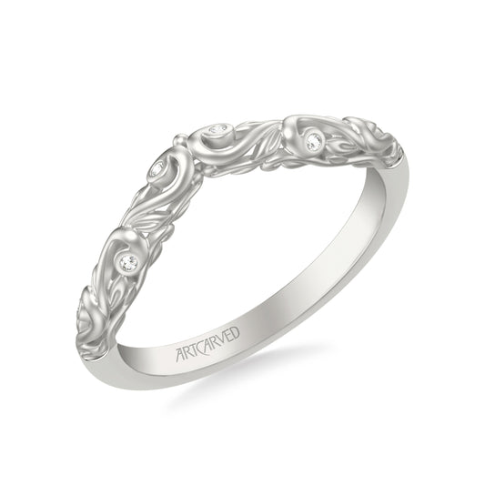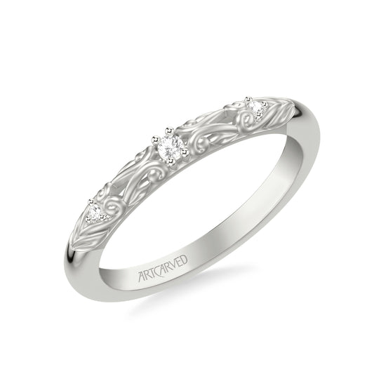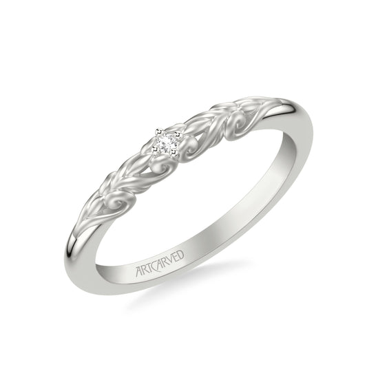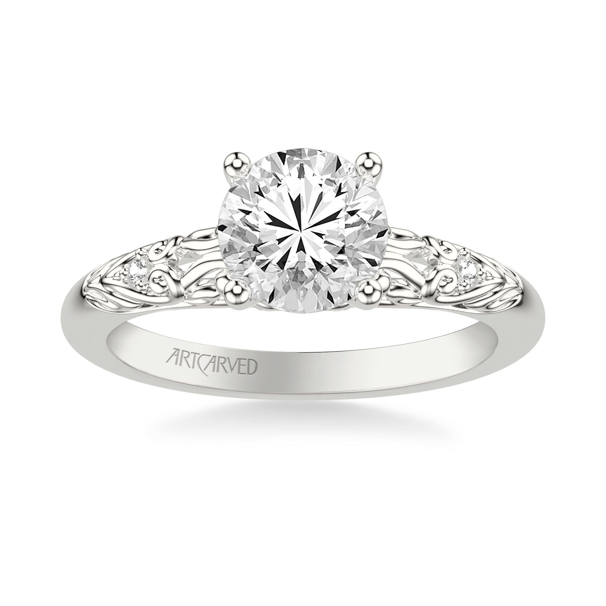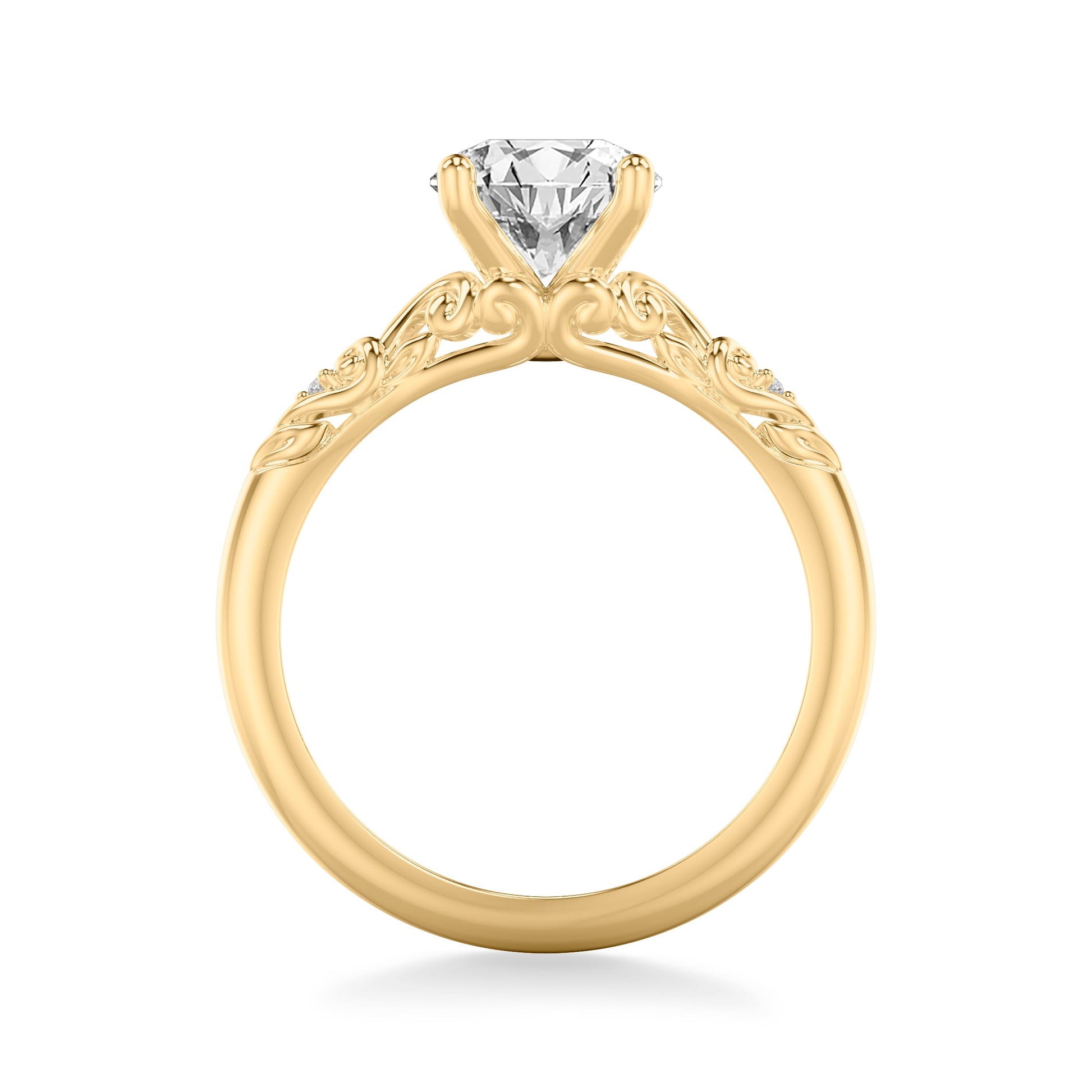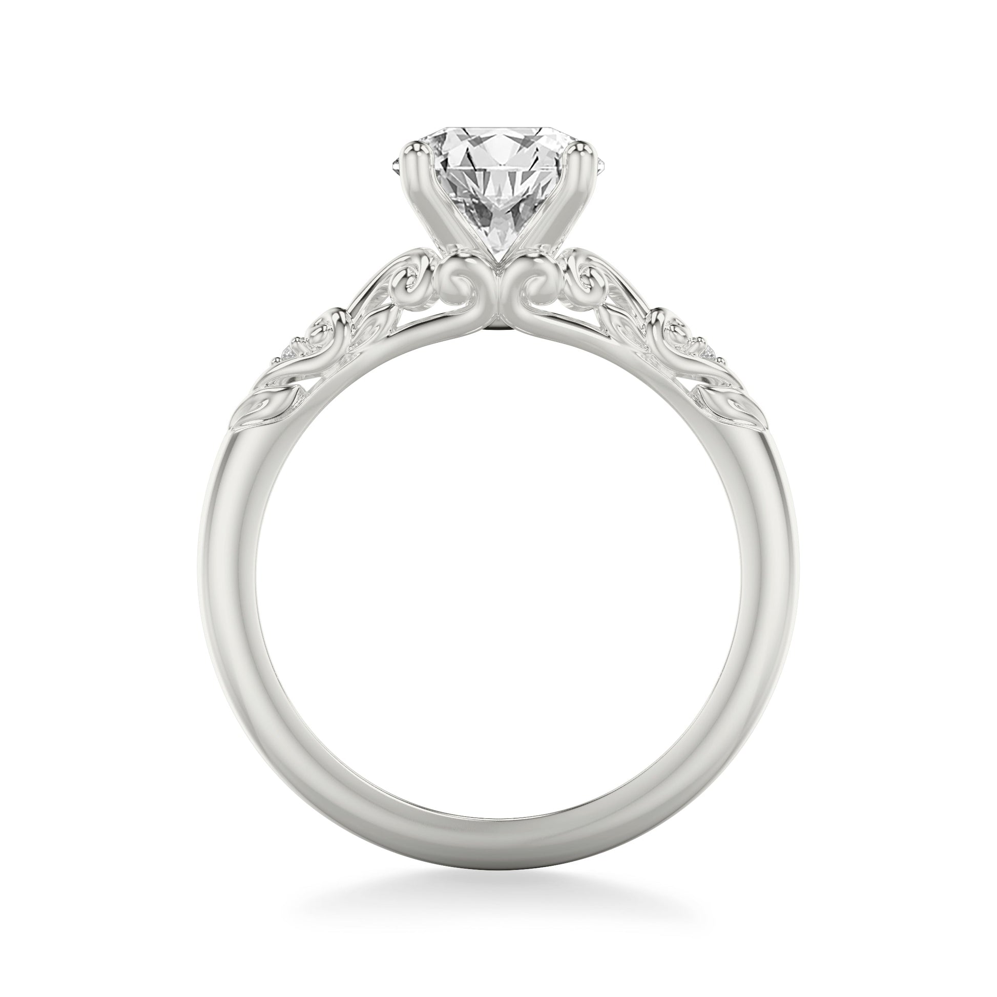 Lyric Engagement Ring with Glass Bead Finish Filigree Scroll Design and Single Diamond Accent with Polished Shank