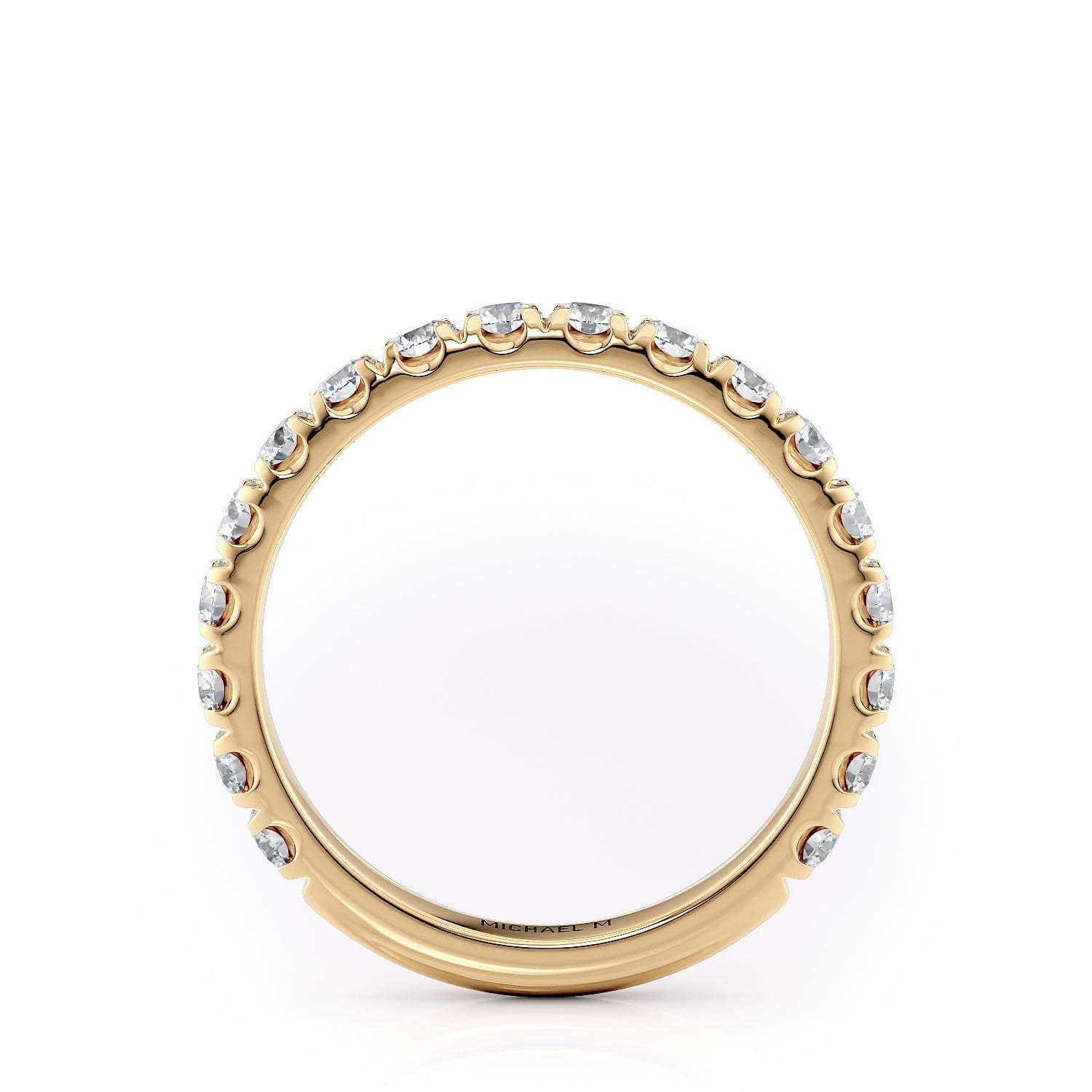 This wedding band is meticulously designed with premium diamonds, offering a classic and refined accent to your wedding ensemble. Featuring a continuous row of diamonds that extends three-quarters around the band, it stands as an ideal selection for enduring elegance.