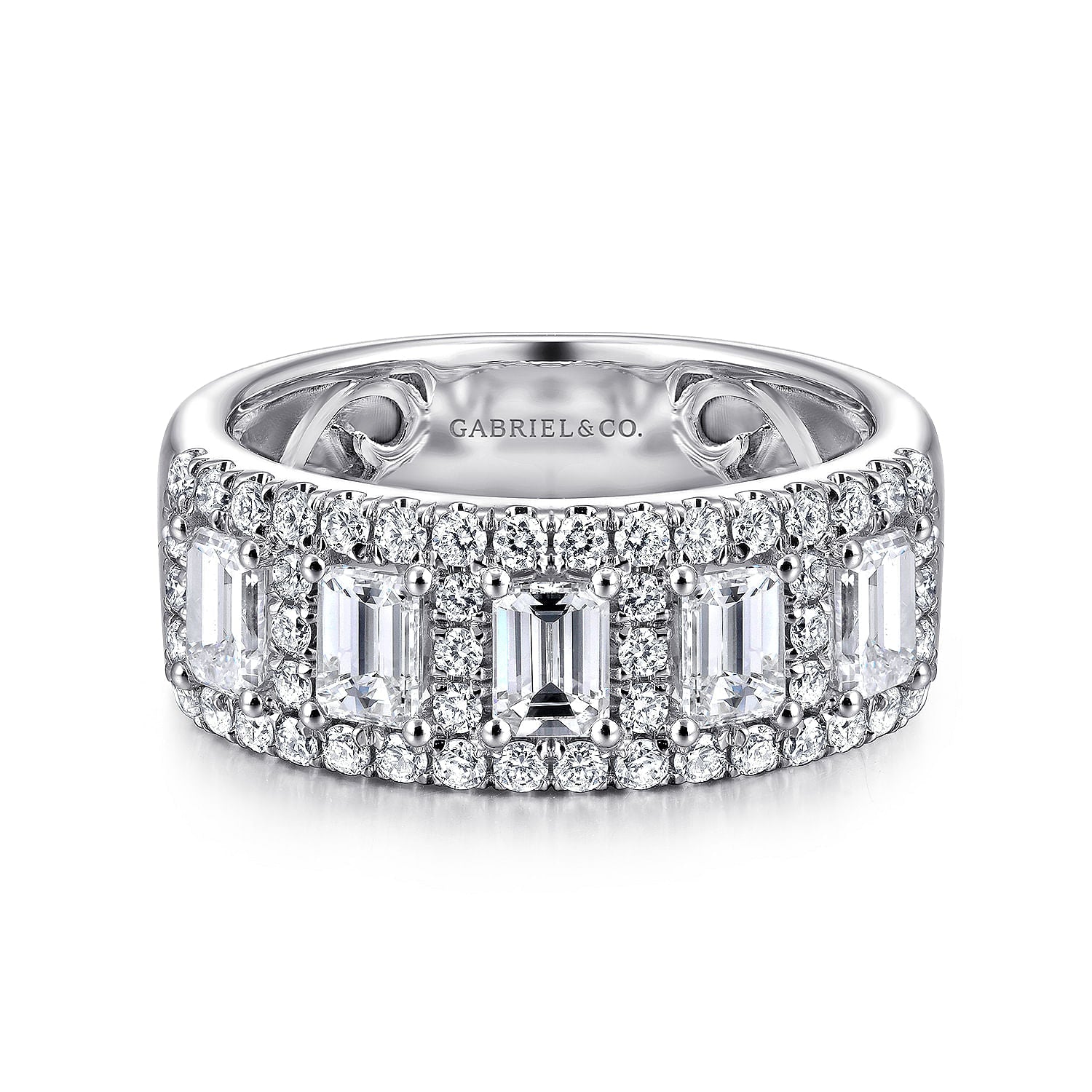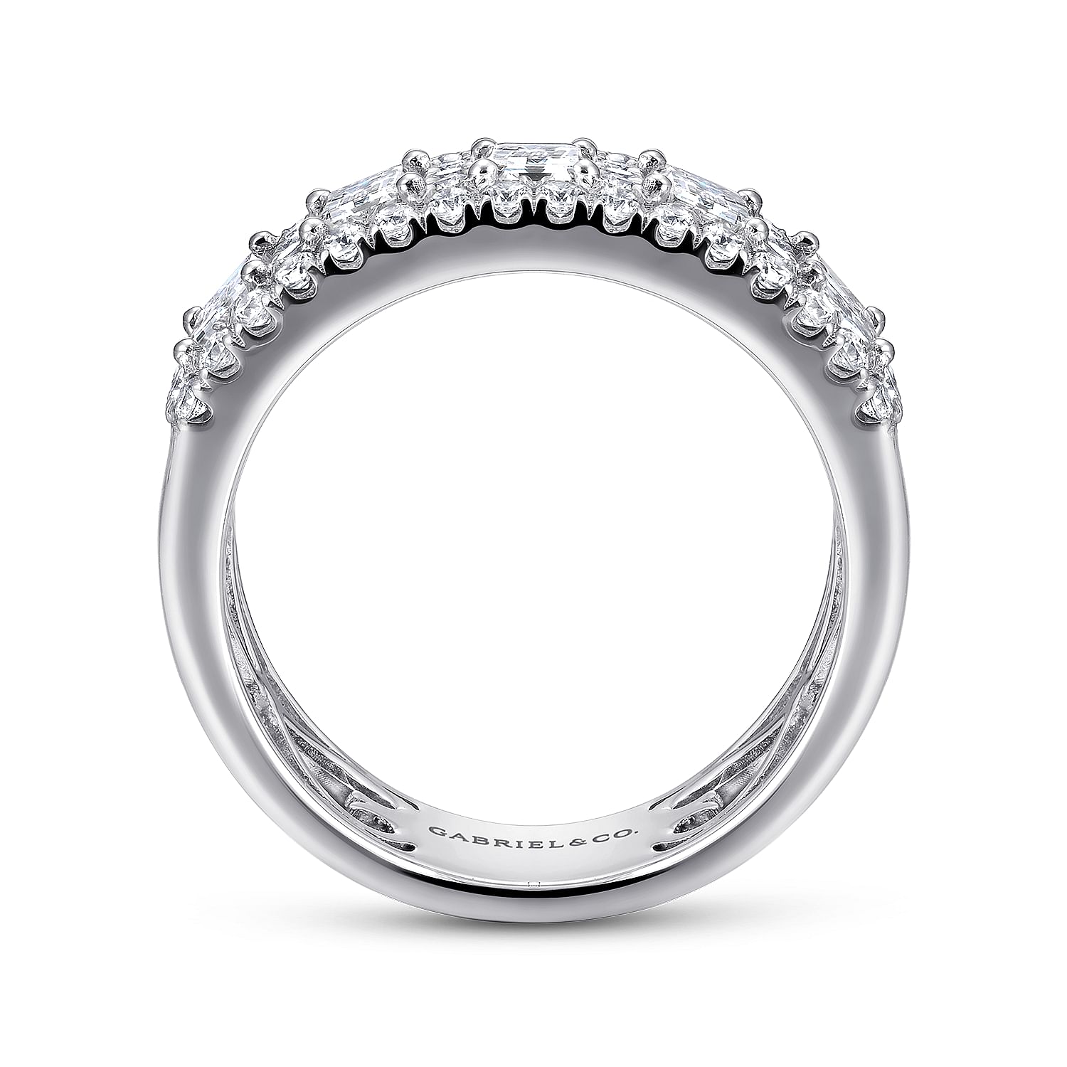 Wide 14K White Gold Emerald Cut and Round Diamond Anniversary Band